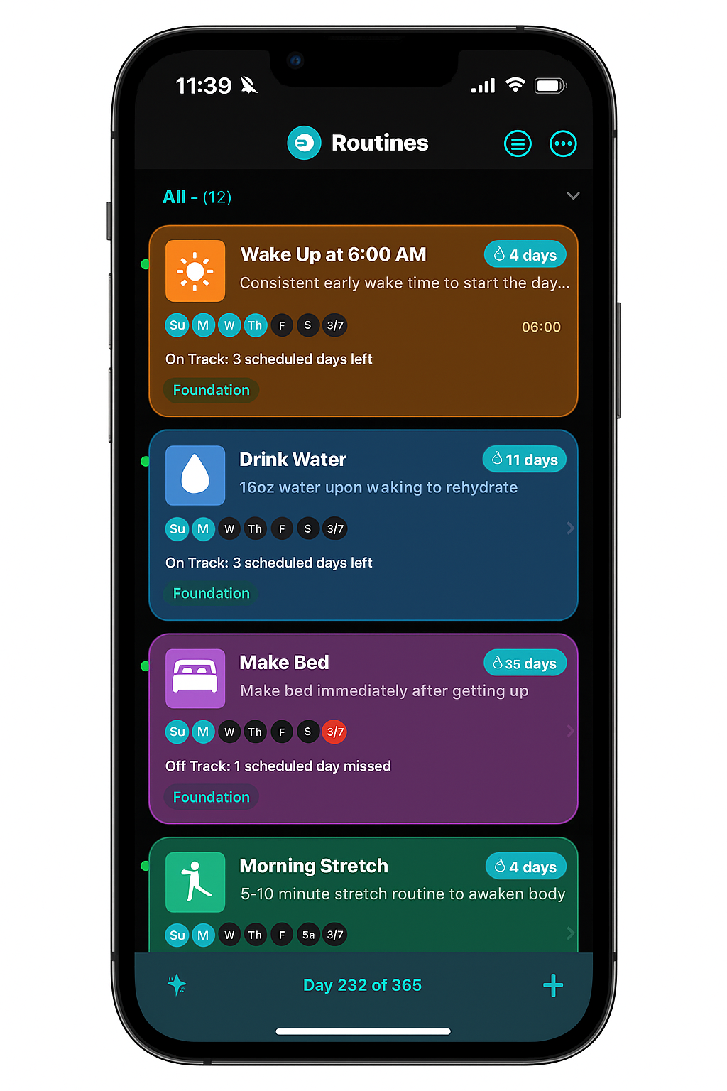 Start your day with intention and energy using our upcoming Morning Routine App. Designed to help you build a personalised and effective morning routine, our app sets the stage for a productive and fulfilling day. Get ready to transform your mornings!