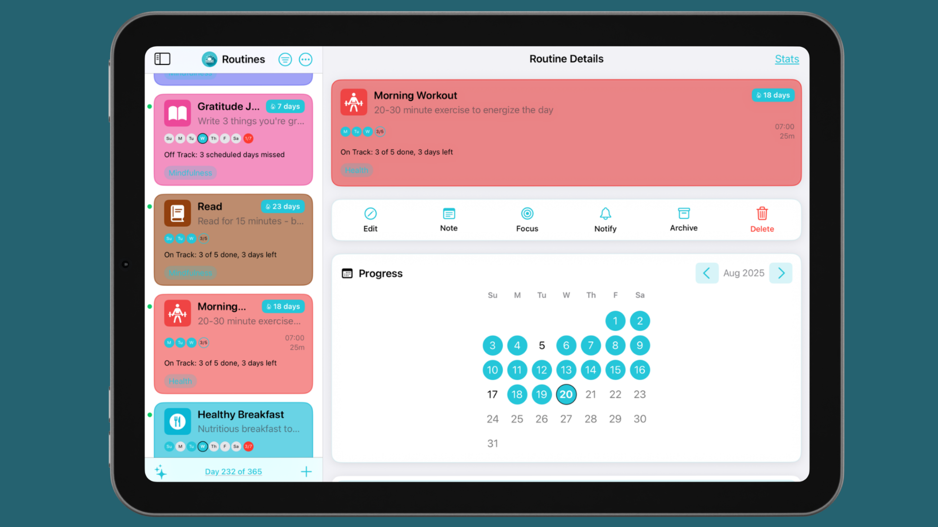- Progress Tracking: Monitor your consistency and celebrate milestones.
