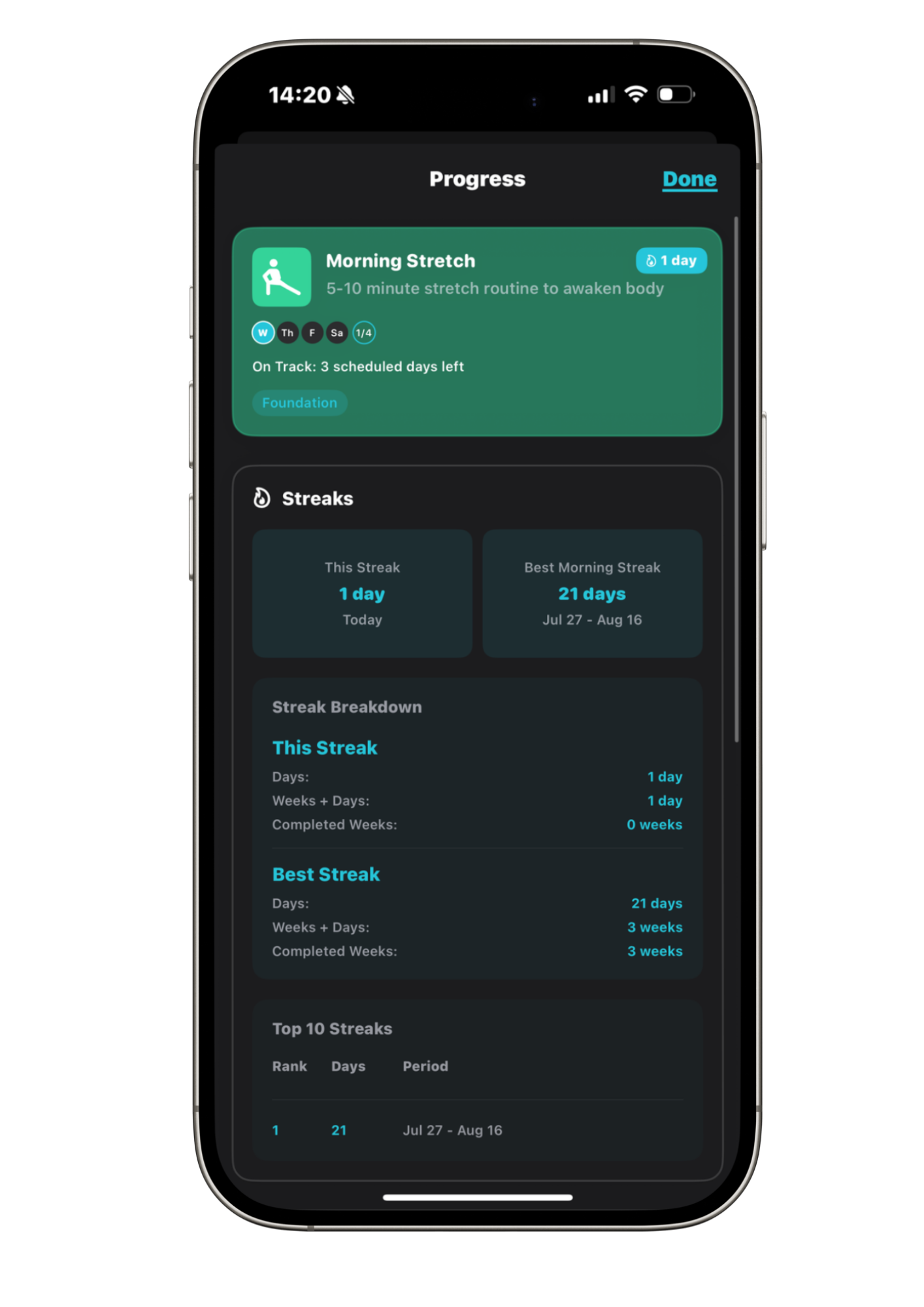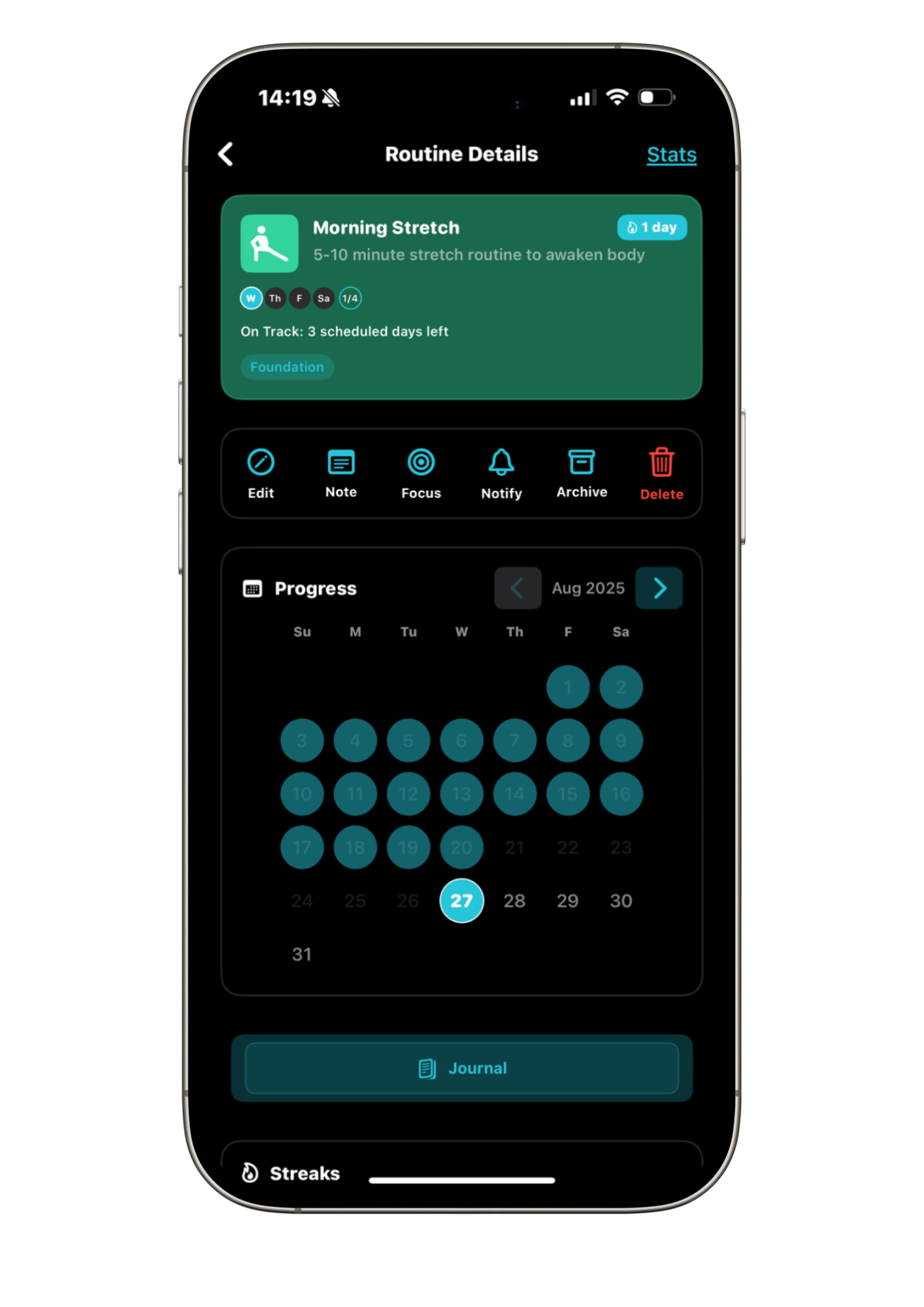- Progress Tracking: Monitor your consistency and celebrate milestones.